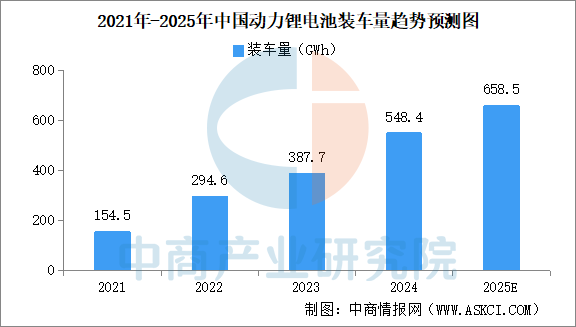 中商產(chǎn)業(yè)研究院發(fā)布的《2025-2030年中國動力鋰電池市場前景及投資發(fā)展戰(zhàn)略研究報告》顯示,2024年中國動力鋰電池裝車量548.4GWh,同比增長41.5%。中商產(chǎn)業(yè)研究院分析師預(yù)測,2025年中國動力鋰電池裝車量將達(dá)658.5GWh。