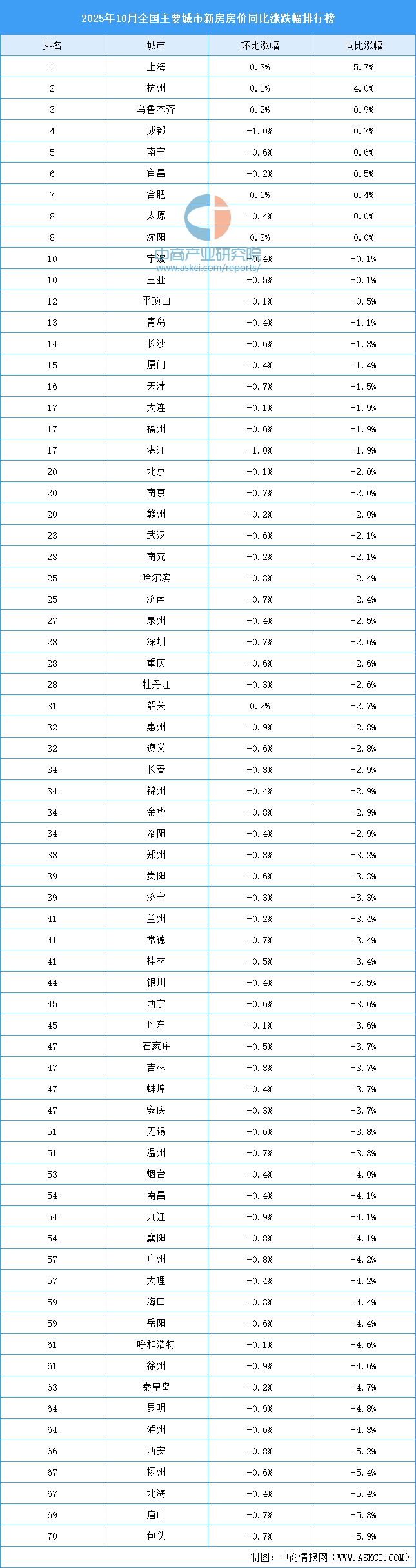 上海新房房?jī)r(jià)同比領(lǐng)漲全國(guó),杭州緊隨其后,新房房?jī)r(jià)同比上漲4.0%,烏魯木齊、成都、南寧、宜昌、合肥新房房?jī)r(jià)同比均有小幅上漲。三亞新房房?jī)r(jià)同比下跌0.1%,南京下降2.0%,武漢下降2.1%,重慶下降2.6%,西安下降5.2%。