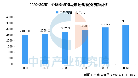 中商情報網(wǎng)訊:全球冷鏈物流市場呈現(xiàn)出快速發(fā)展態(tài)勢,亞太地區(qū)(尤其是中國)是主要增長驅(qū)動力。中商產(chǎn)業(yè)研究院發(fā)布的《2025-2030年中國冷鏈物流行業(yè)深度調(diào)研及投資前景預(yù)測報告》顯示,全球冷鏈物流市場規(guī)模從2020年的2483.8億美元增長至2024年的3133.9億美元,年均復(fù)合增長率達5.98%。中商產(chǎn)業(yè)研究院分析師預(yù)測,2025年全球冷鏈物流市場規(guī)模將達到3353.3億美元。