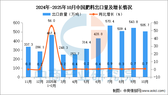 2025年10月中國肥料出口數(shù)據(jù)統(tǒng)計(jì)分析:出口量505.7萬噸